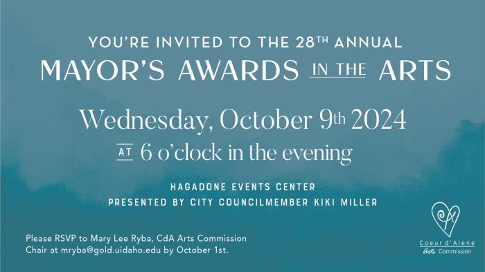 The Mayor’s Awards in the Arts are presented by the Coeur d’Alene Arts Commission and the City of Coeur d’Alene to recognize and encourage excellence in the arts and to stimulate and support awareness of the arts throughout the city.