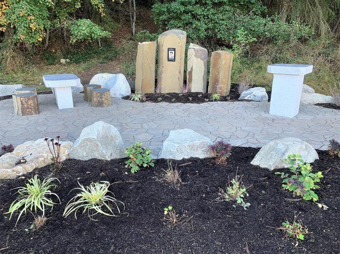 Dwight Bershaw was a much-loved and respected resident of Coeur d’Alene. He volunteered on many public projects and was involved in several groups here that do good works to benefit Coeur d’Alene. He went out of his way to promote this community and was sometimes jokingly called “the Mayor of Coeur d’Alene” when proudly showing visitors around. He truly loved this place he called home for most of his adult life. The memorial here at McEuen Park was designed by his good friend Dale Gephart. The work to get it installed and funded was done by the Sunrise Rotary group that Dwight belonged to, and was a long-time greeter for, and Dwight’s long-time employer Clearwater Summit Group. The table and five stone benches represent Dwight’s close friends who met weekly to share stories of their families, camaraderie, and their latest endeavors. They were the “Monday Night Men’s Group”. The one empty spot represents Dwight. The four pillars represent Dwight (in the middle), his wife Ali, and their two children, Chance and Marissa. The additional “standing table” adds a place for those who wish, to stop and enjoy the beauty of this memorial and the view of McEuen Park.
