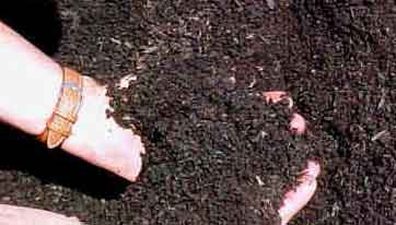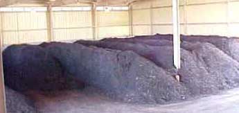 The screened compost looks like an organic topsoil which is placed in aerated curing piles for 30 days prior to sale. Curing occurs under covered storage.