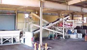 The process used is called Aerated Static Pile Composting because non-moving, “static”, piles are built and aerated for the composting to occur. While the facility has been on line since 1990, several major additions and modifications have been made. They include covered chip storage, outside pile bays, aerated coring, additional conveying, and mixing and screening equipment. Other essential equipment includes 2 front-end loaders of 3 cubic yard capacity—used for building and tearing down the piles.